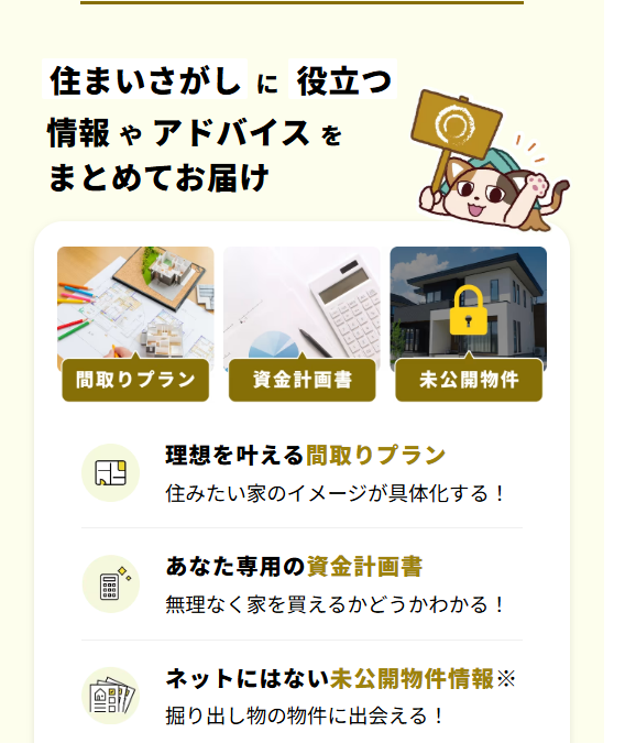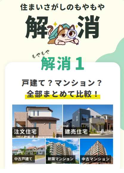 戸建て・マンション、新築・中古など、さまざまな住まいの情報を比較検討できるため、条件に合う選択肢を整理する際の参考資料として活用できます。