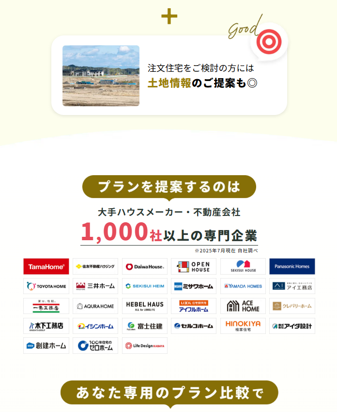 サービス内容や対応エリア、提携会社はそれぞれ異なるため、ご自身の希望条件に合わせて比較・検討することが大切です。家づくりを検討し始めた段階の情報収集のひとつとして、参考にしてみてください。