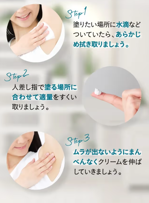 A. 多くのワキガクリームは朝1回の使用で日中のニオイ対策が可能ですが、汗をたくさんかく日や運動後は塗り直すとより心地よいです。特に夏場や湿度の高い時期は、朝+昼の2回塗布がおすすめです。