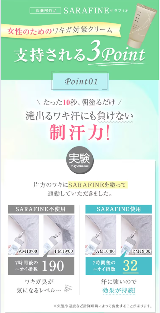 →汗とニオイを「根本から抑える」アプローチができるから、ワキガ体質の人でも心地よさが段違い。 -