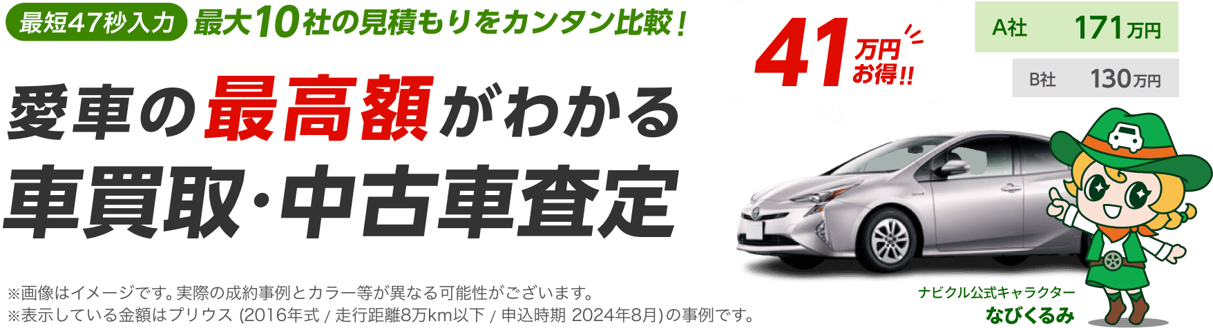 たとえばナビクルやズバット車買取比較では、車種・年式・走行距離を入力するだけで簡単に相場を確認できます。
