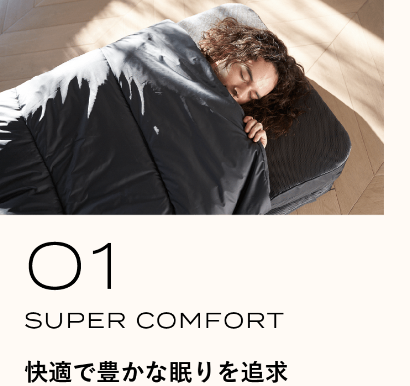異なる素材の特性を活かしながら、心地よい寝心地を目指したつくりが特長です。